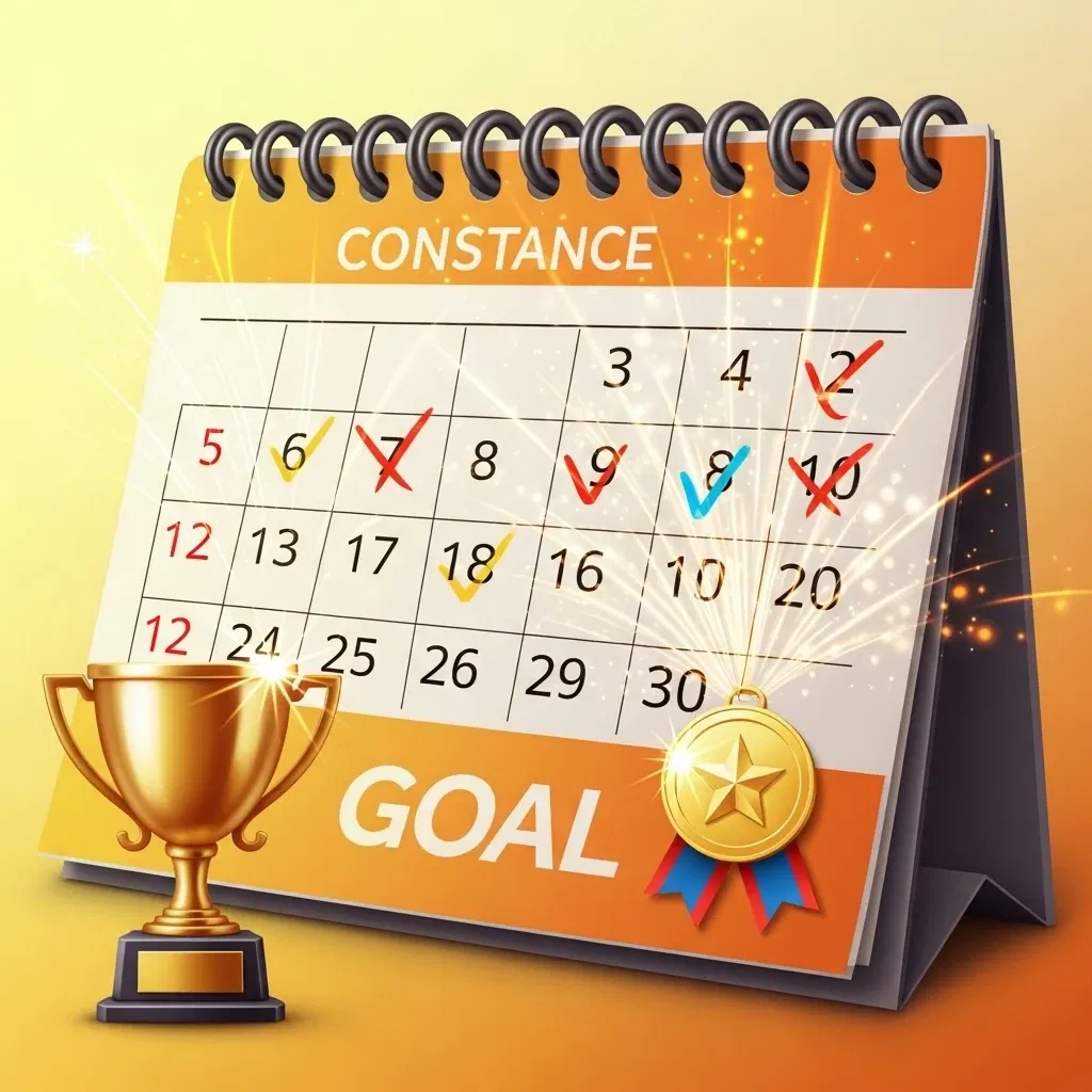 um mapa visual para você riscar os dias concluídos e ver sua constância crescer.